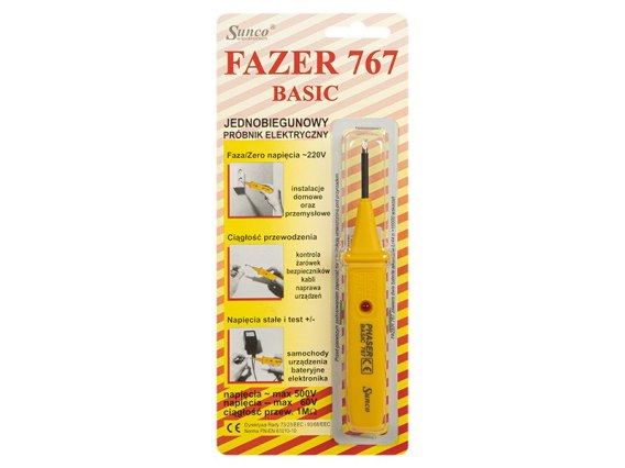 Fazerem 767 sprawdzić można rwnież poprawność pracy urządzeń elektrycznych. W elektronice Fazer 767 pozwala miedzy innymi wykrywać 0/1 oraz pozwala sprawdzić, czy rezystor, kondensator, dioda i tranzystor nie są uszkodzone. Przyrząd nie posiada wyłącznika zasilania. Fazer pobiera prąd tylko w momencie pomiaru. Precyzyjna,dopracowana konstrukcja układu procesora Fazera pozwala na zapewnienie bardzo małego zużycia energii. Alkaliczne baterie LR44 zapewniają przeprowadzenie ponad 10000 wskazań.