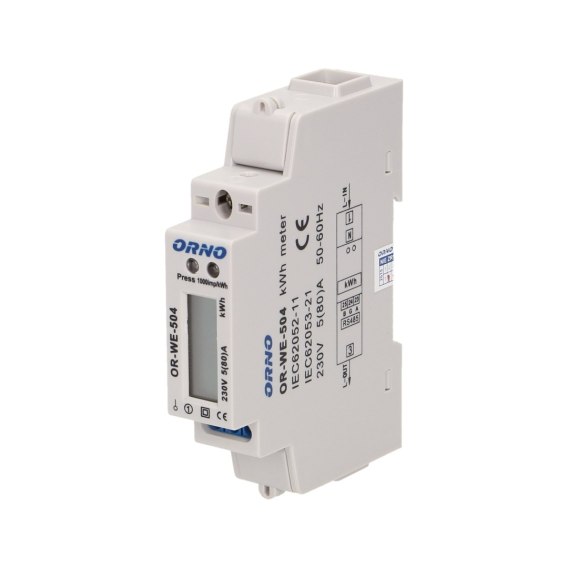 1-fazowy wskaźnik zużycia energii elektrycznej, 80A, port RS-485, 1 moduł, DIN TH-35mm