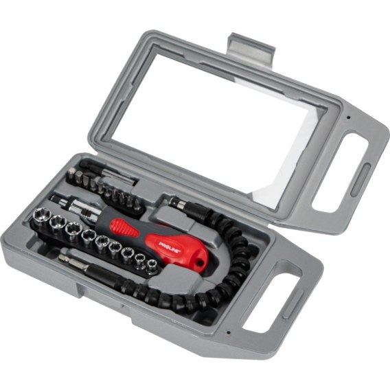 10008 Wkrętak uniwersalny z grzechotką CrV, zestaw - 23 elementy, Proline
