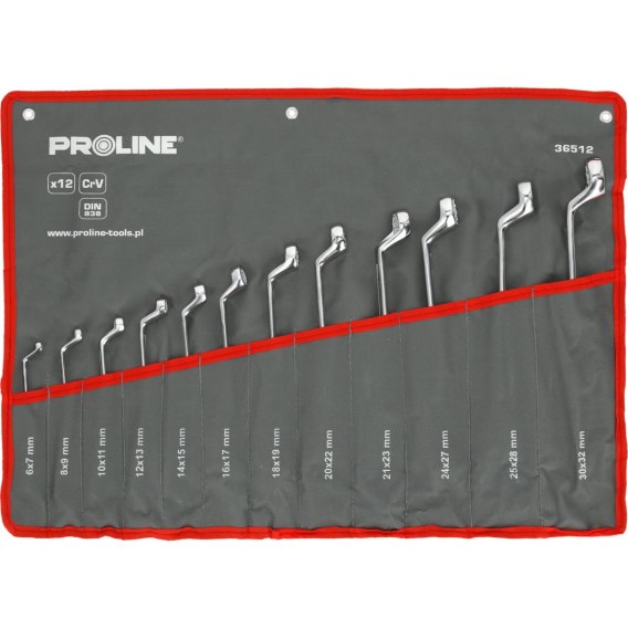 36512 Zestaw kluczy oczkowych odgiętych, CrV, 12 elementów., Proline