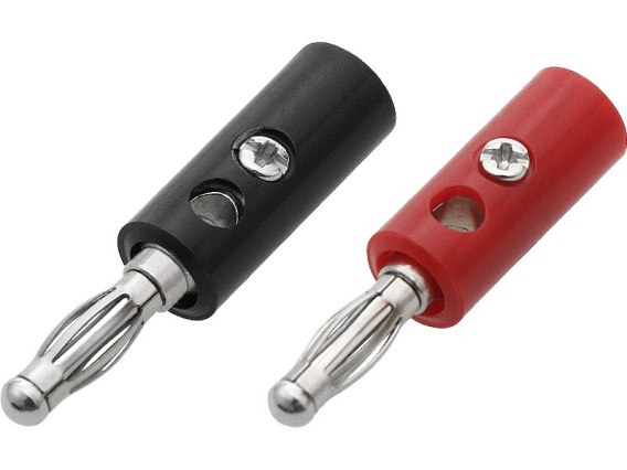 4049# Wtyk banan plastik skręcany ze śrubą czerwony+czarny