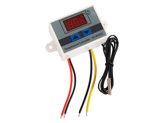 Cyfrowy termostat, regulator temperatury. Wyposażony w wodoodporną sondę, ktra umożliwia pracę w wilgotnym środowisku (akwaria i terraria). Świetnie sprawdzi się rwnież przy regulacji temperatury pracy rozmaitych urządzeń. Łatwy montaż oraz prostota obsługi (2 fizyczne przyciski). Cyfrowy wyświetlacz umożliwia bieżący podgląd ustawionej temperatury oraz dioda LED sygnalizująca podłączenie przekaźnika. Umożliwia automatyczną regulację temperatury oraz jej pomiar w zakresie -50 stopni do 110 stopni Celsjusza.