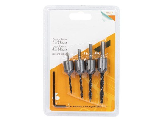 67-047# Zestaw wierteł z pogłębiaczem 4sztuk do drewna