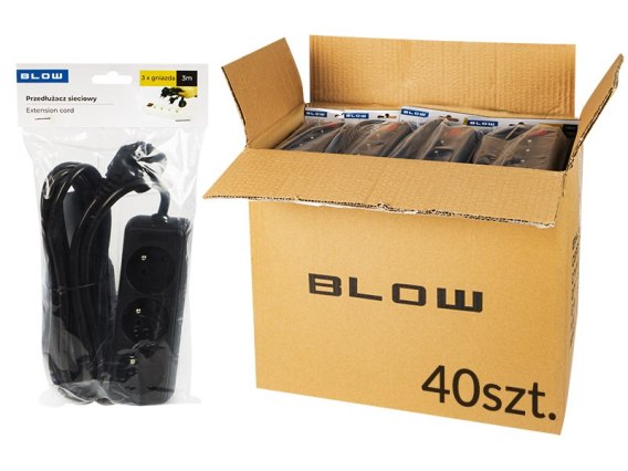 98-542# Przedłużacz sieciowy pr-370p 3-gniazda z uziemieniem 3m czarny 3x1,5mm opakowanie