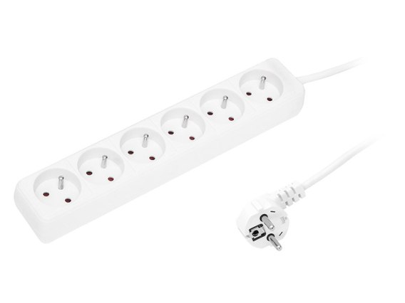 98-720# Przedłużacz sieciowy pr-670p 6-gniazd z uziemieniem 1,5m biały 3x1,5mm