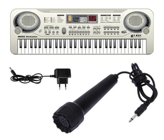 Keyboard - elektroniczne, 61 klawiszowe organy z dodatkowym, dedykowanym mikrofonem. Organki wyposażone zostały w jeden głośnik o donośnym dźwięku. Mnóstwo funkcji multimedialnych i muzycznych oraz dodatkowa klawiatura numeryczna z przyciskami multimedialnymi ułatwiają dziecku naukę gry oraz czynią zabawę prawdziwą przyjemnością.