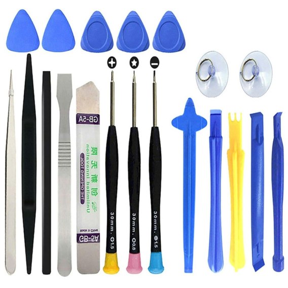 Profesjonalny zestaw narzędzi serwisowych do napraw telefonów i innych urządzeń elektronicznych. W komplecie znajduje się 20 elementów, różne typy wkrętaków, otwieraków, przyssawek i innych niezbędnych dla każdego elektronika przedmiotów. Narzędzia z powodzeniem sprawdzą się przy drobnych naprawach precyzyjnych.