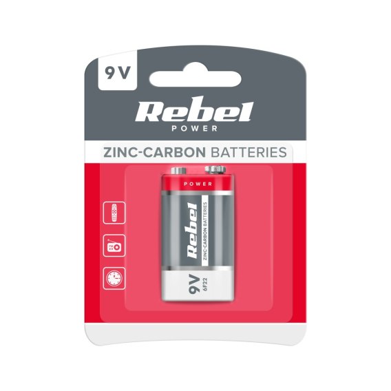 Bateria cynkowo-węglowa Rebel 6F22 to ekonomiczne i niezawodne źródło zasilania, idealne do urządzeń o niewielkim poborze energii. Zaprojektowana z myślą o codziennym użytku, doskonale sprawdza się w pilotach zdalnego sterowania, latarkach diodowych, zegarach ściennych oraz innych małych urządzeniach elektronicznych.