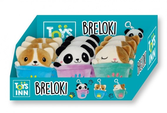 Brelok pluszowy kubek zwierzątko mix 9 sztuk display