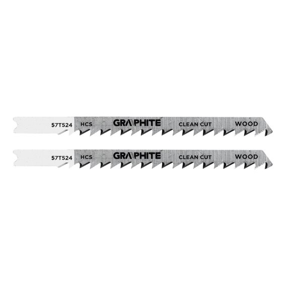 Brzeszczot do wyrzynarki, 6 TPI, HCS, uchwyt typu U, 2 sztuki w komplecie, długość całkowita 100 mm, długość robocza: 74 mm, szerokość: 8 mm, grubość: 1,5 mm, rozstaw zębów: 4 mm, zastosowanie: drewno iglaste, płyty wiórowe, sklejka, płyty pilśniowe (10-45 mm), czyste cięcie
