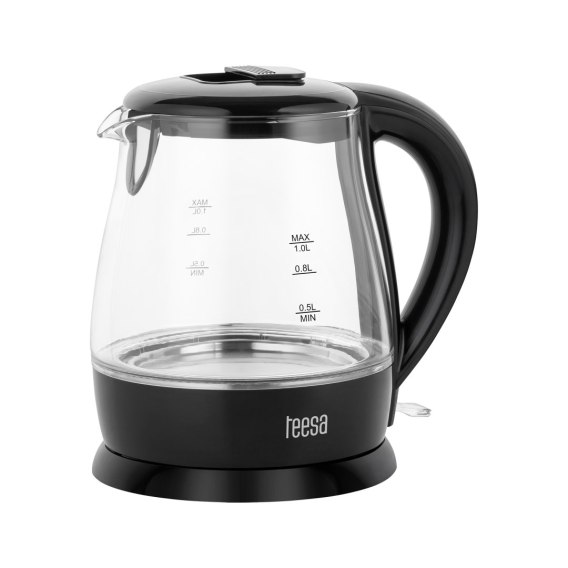 Czajnik elektryczny TEESA, szklany, 1650 W, czarny, 1 L