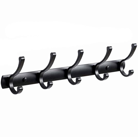 Klasyczny, czarny wieszak do przedpokoju z 10 haczykami.