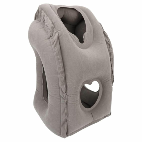 Dmuchana poduszka podróżna to niezbędny element wyposażenia każdego podróżnika. Sprawdza się w samolocie, pociągu, autobusie, aucie czy w biurze. Dzięki kompaktowym rozmiarom po złożeniu można ją zabrać dosłownie wszędzie. Ergonomiczny kształt dopasowuje się do naturalnych krzywizn ciała, zapewniając komfortowy odpoczynek w trakcie długiej podróży. Po spuszczeniu powietrza zajmuje bardzo mało miejsca i mieści się w dołączonym pokrowcu.