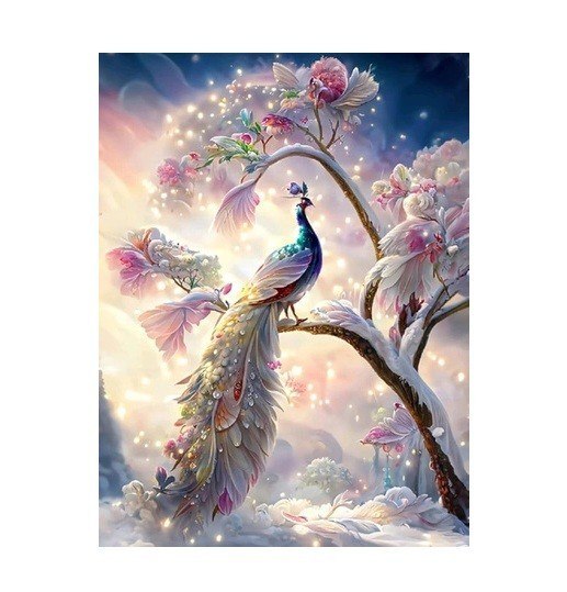 Diamentowa Mozaika Biały paw na gałęzi Haft Kreatywny 30x40 cm
