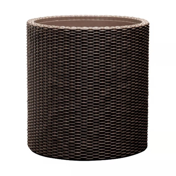 Średnia, okrągła donica CYLINDER PLANTER M, z powierzchnią stylizowaną na naturalny splot rattanowy, doskonale wyeksponuje piękno roślin na przydomowym tarasie lub balkonie. Wyjątkowo ładnie komponuje się z nowoczesnymi, jak i tradycyjnie zaaranżowanymi przestrzeniami.