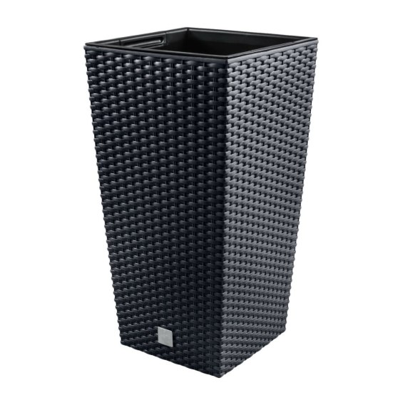 Nowy zamysł w estetyce wzornictwa firmy Prosperplast. Wysoka doniczka Rato Square o fakturze wiernie imitującej plecionkę z naturalnego rattanu, w klasycznej, czystej formie, pozwala kreować piękne unikatowe wnętrza i bez ograniczeń aranżować przestrzeń wokół domu, godząc różne style i upodobania. Jej funkcjonalność wyraża się również w komforcie użytkowania bez względu na aurę. W zestawie z wkładem.