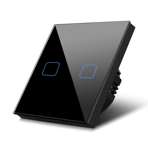 Dotykowy włącznik światła Maclean, podwójny, szklany, czarny z kwadratowym podśw. przycisku, MCE703B