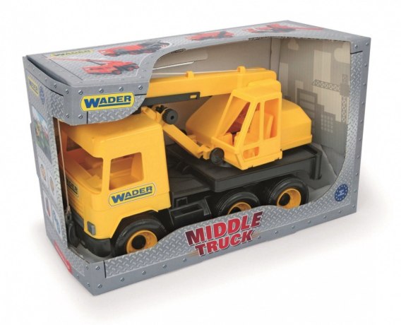 Zabawka posiada wysuwany i obrotowy dźwig. Zapakowany w kolorowy karton.