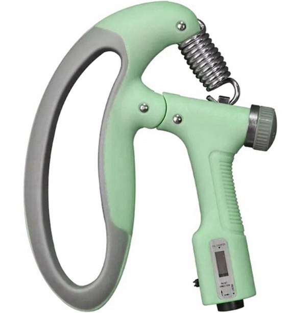 Ściskacz do rąk z regulacją to doskonały przyrząd fitness. Umożliwia on ćwiczenie mięśni przedramienia i wzmacniania siły uścisku dłoni. Ściskacz pozwala nam na pracę w regulowanym oporze od 10 do nawet 100 kg. Umożliwia to dostosowanie oporu do warunków fizycznych ćwiczącego i czyni narzędzie niezwykle uniwersalnym. Ściskacz został wyposażony w 4-cyfrowy licznik mierzący siłę naszego oporu z dodatkową funkcją RESET. To doskonały sposób na rehabilitację bądź wzmocnienie mięśni dłoni i przedramienia, które ciężko wyćwiczyć korzystając z klasycznych przyrządów. Wygodne rączki pokryte gumą i tworzywem sztucznym nie zmęczą nadmiernie dłoni.