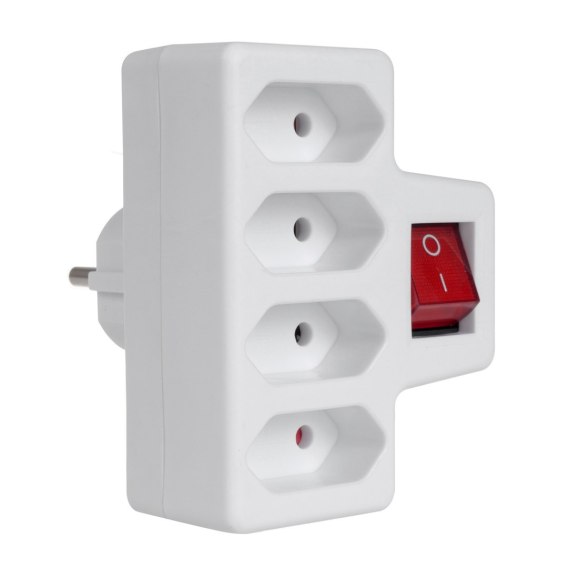 Gniazdko prądowe Maclean, poczwórne z wyłącznikiem, wtyk uniwersalny, 4x2,5A, MCE217