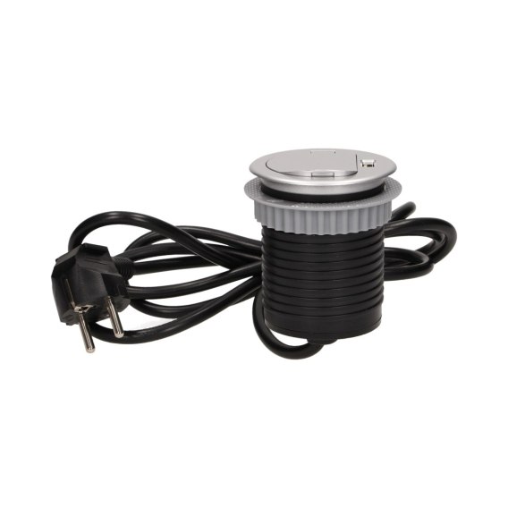 Gniazdo meblowe ?6cm wpuszczane w blat z pokrywką, ładowarką USB i przewodem 1,8m, 1x2P+Z, 1xUSB
