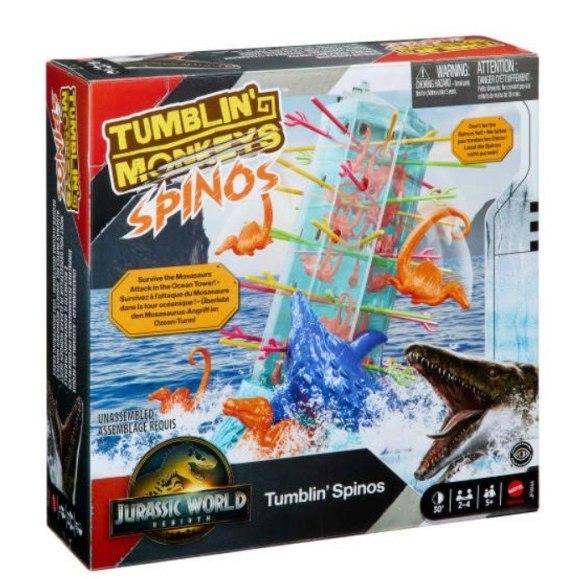 Uwielbiana przez dzieci gra Spadające małpki, teraz w wersji z figurkami spinozaurów inspirowanych filmem Jurassic World Odrodzenie.