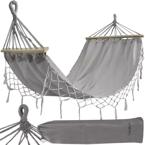 ?KOMFORTOWY - ten niezwykle wygodny i funkcjonalny hamak pozwoli Ci na relaks w dogodnych warunkach. Świetnie sprawdzi się w ogrodzie, na tarasie, balkonie a nawet w pokoju! Chcesz położyć się wzdłuż? A może w poprzek? Obie opcje będą wygodne i pozwolą na chwilę wytchnienia w komfortowym hamaku GARDLOV.