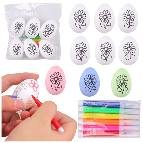 ? JAJKA STYROPIANOWE DO MALOWANIA 6 SZTUK Z FLAMASTRAMI ?
