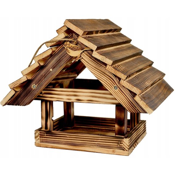 Duży, opalany karmnik starannie wykonany z suchego drewna świerkowego, co zapewnia jego stabilność i wytrzymałość. Karmnik ozdobiony jest uroczym ptaszkiem, który doda uroku każdemu ogrodowi. Jego konstrukcja została zaprojektowana tak, aby kropla deszczu się nie prześlizgnęła, co gwarantuje, że pokarm dla ptaków pozostanie suchy.
