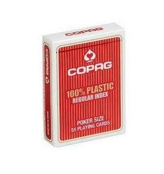 Karty poker 100% plastik pk2. talia czerwona, index w 2 rogach
