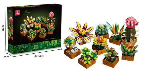 Klocki Konstrukcyjne Kwiaty Doniczkowe to wyjątkowa propozycja dla osób, które kochają kreatywne budowanie oraz oryginalne dekoracje. Zestaw składa się z 913 elementów, dzięki którym można stworzyć bogatą kolekcję kolorowych roślin doniczkowych ? od egzotycznych kaktusów po efektowne kwiaty o rozłożystych płatkach.