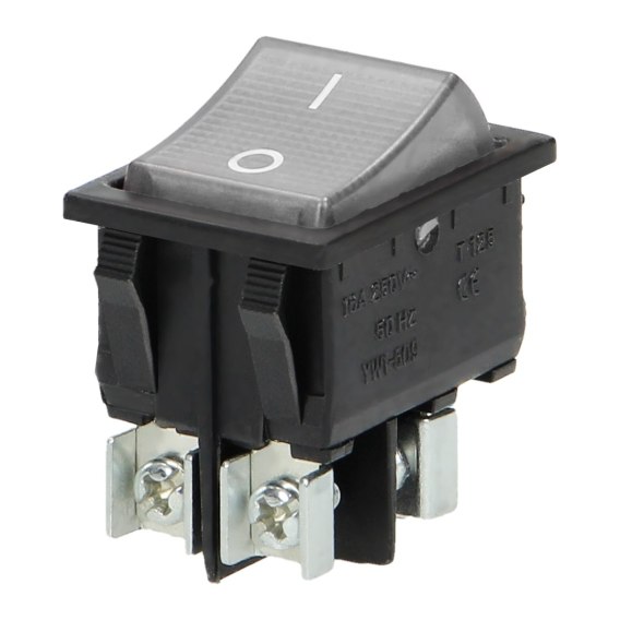 Łącznik kołyskowy podświetlany, przycisk przeźroczysty, czarna obudowa