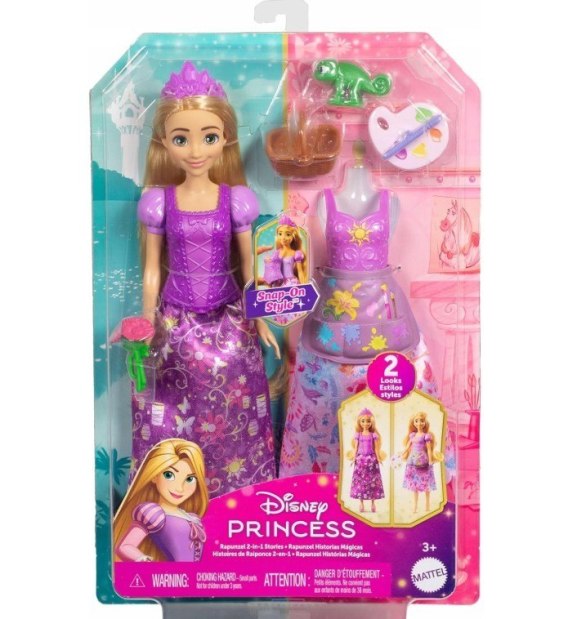 Zestaw modowych lalek 2 w 1 Disney Princess Stories Roszpunka zawiera tematyczne ubranka i akcesoria, dzięki którym dzieci mogą odgrywać dwie wyjątkowe historie!