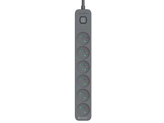 Listwa zasilająca antyprzepięciowa TRACER Power Line+ 1,8 m Graphite (6 gniazd)