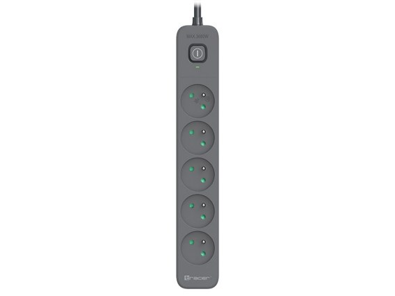 Podstawowym atutem naszej listwy zasilającej jest jej wszechstronność. Z 5 gniazdami zasilającymi, Tracer PowerLine + umożliwia podłączenie kilku urządzeń jednocześnie, zapewniając jednocześnie stabilne zasilanie każdemu z nich. Niezależnie od tego, czy jest to komputer, telewizor, sprzęt kuchenny czy inne urządzenie elektryczne, możesz być pewien, że listwa Tracer PowerLine + obsłuży je sprawnie i bezpiecznie.
