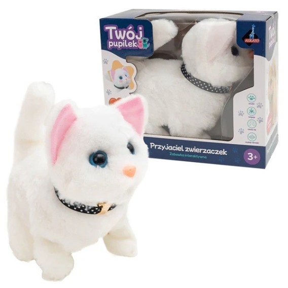 Poznaj uroczego białego kotka z serii Twój Pupilek, który stanie się najlepszym przyjacielem każdego dziecka! Kotek chodzi, miauczy i rusza pyszczkiem, co sprawia, że wygląda jak prawdziwy! Jego puszysta sierść jest miła w dotyku, a dodatkowa obroża dodaje mu uroku. Zabawka jest interaktywna, dzięki czemu dzieci mogą cieszyć się realistycznymi efektami dźwiękowymi i ruchowymi.