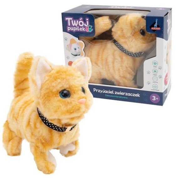 Poznaj uroczego brązowego kotka z serii Twój Pupilek, który stanie się najlepszym przyjacielem każdego dziecka! Kotek chodzi, miauczy i rusza pyszczkiem, co sprawia, że wygląda jak prawdziwy! Jego puszysta sierść jest miła w dotyku, a dodatkowa obroża dodaje mu uroku. Zabawka jest interaktywna, dzięki czemu dzieci mogą cieszyć się realistycznymi efektami dźwiękowymi i ruchowymi.