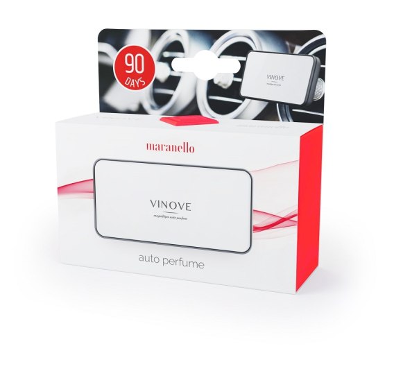 VINOVE - EKSKLUZYWNE PERFUMY SAMOCHODOWE Nowa marka perfum samochodowych, stworzona przez polskich pasjonatów we współpracy z francuskimi mistrzami sztuki perfumeryjnej i włoskimi projektantami oraz naukowcami. Do ich stworzenia zastosowano technologię XXI wieku. Wykorzystując wiedzę, otwartość i doświadczenie zespołu naukowców i wspólnie z nimi udało się skondensować zapachy w nowatorskim polimerze. Nadano mu taki kształt, by powietrze z wywietrzników samochodowych delikatnie opływało polimerowy labirynt, uwalniając zapach subtelnie i długotrwale ? aż do 90 dni. Projektując nośnik zapachu brano pod uwagę przede wszystkim jego walory użytkowe: długotrwałość uwalniania zapachu, bezpieczeństwo dla tapicerki i kokpitu samochodu, a także ekskluzywny wygląd, współgrający ze stylistyką nowoczesnych aut. Maranello Zapach przepełniony energią, emocjami i tajemnicą. Przywodzi na myśl wspomnienia bezsennych nocy, szaleńczych wypraw, niekończących się podróży. Łączy w sobie dojrzałość wanilii, subtelność delikatnych kwiatów jaśminu oraz energię pomarańczy ? Ten zapach jest kobietą. Nuta głowy : pieprz, mandarynka, gruszka Nuta serca : kwiat pomarańczy, jaśmin Nuta bazowa : kawa, wanilia Nuta głowy: cytryna, mandarynka, czerwony pieprz Nuta serca: jaśmin, konwalia, lilia, elemi Nuta bazowa: drewno sandałowe, cedr, wetiwer, ambra, piżmo Wymiary: 7.4 x 3.7 cm (głębokość 2.2 cm bez zaczepu lub 5.3 cm z zaczepem) Opakowanie: Waga: 0.06 kg Wymiary: 11.1 × 6.7 × 4.2 cm