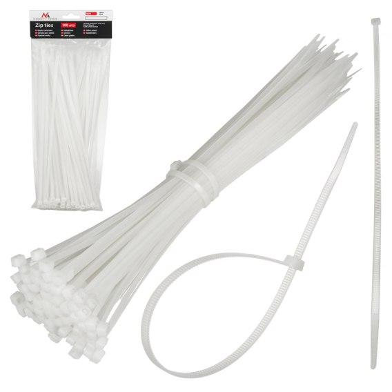 Opaski zaciskowe Maclean, 3.6x250mm, Odporna na UV, Temp. użytkowania - 40 +85 st. C, 100 sztuk, Białe, MCTV-463 W