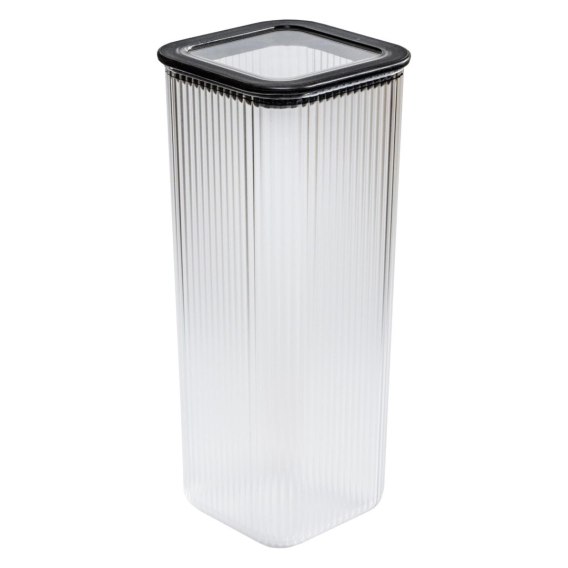 Szlachetnie wyglądający pojemnik ozdobiony jest oryginalnie wyglądającymi wyżłobieniami. Wyposażony jest w szczelną, przezroczystą pokrywę, która umożliwia sprawdzenie zawartości. Czarna, elastyczna, uszczelniająca ramka nadaje produktowi charakteru, elegancji i klasycznego wyglądu.