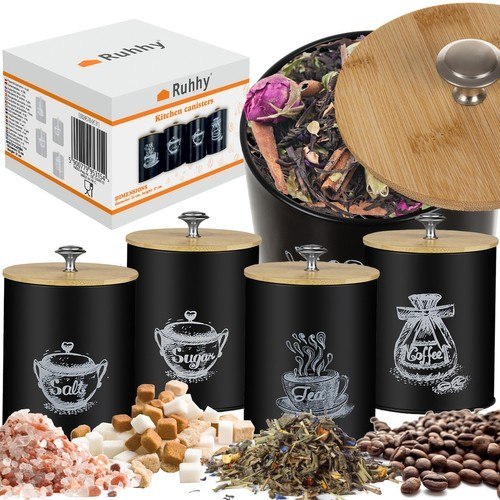 • nowoczesny design elegancki, czarny wygląd pojemników z bambusowymi pokrywkami doskonale pasuje do nowoczesnych kuchni