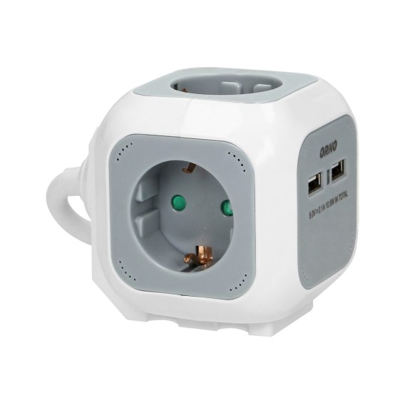 Przedłużacz 4 krotny 2P+Z (schuko), ładowarka 2xUSB, 1,4m H05VV-F 3x1,5mm?, szaro-biały