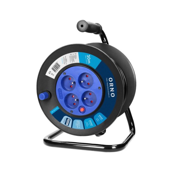Przedłużacz bębnowy, 4 gniazda 2P+Z, kabel PVC H05VV-F 3x1,0mm?, długość 30m, termik, przesłony torów prądowych.