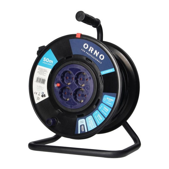 Przedłużacz bębnowy, 4 gniazda 2P+Z (schuko), kabel PVC H05VV-F 3x1,5mm?, długość - 50m, STAŁE GNIAZDA, termik, przesłony torów