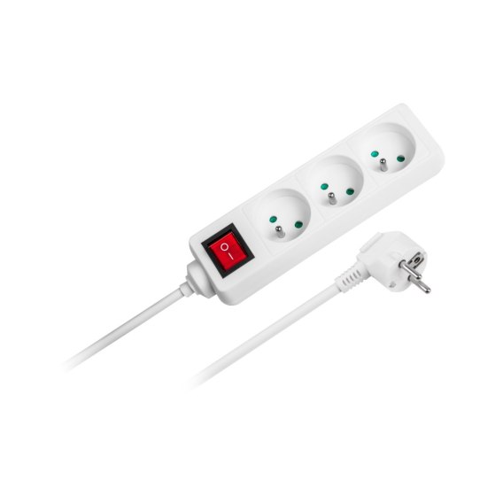 Przedłużacz biały Rebel 3 gniazda , kabel 3m (3x1,5mm) z przełącznikiem