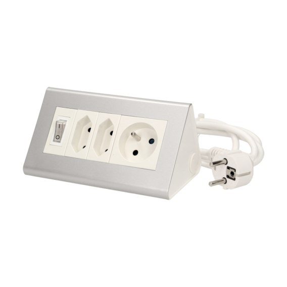 Przedłużacz biurkowy z wyłącznikiem 2x2P/II+1x2P+Z, przewód 1,5 m 3x1mm