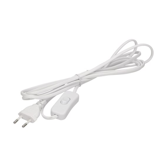 Przewód zasilający z wyłącznikiem on/off i płaską wtyczką, przewód 3m, biały