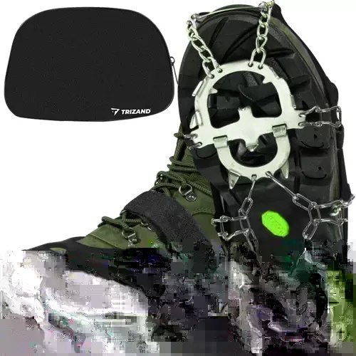 SPECYFIKACJA - kolor: czarno / srebrne; materiał: TPE / stal nierdzewna 304 i 430; ilość zębów w 1 raku: 12; rozmiar: M 35-39; grubość gumy utrzymującej łańcuchy: 0,4 cm; wysokość kolca: 1,7cm; wymiary etui: 13/18/5 cm; waga:415 g; waga z opakowaniem: 420 g.