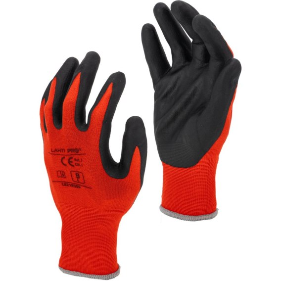 Rękawice nitr. czerw.-czar. l221211p, karta, "11", ce, lahti