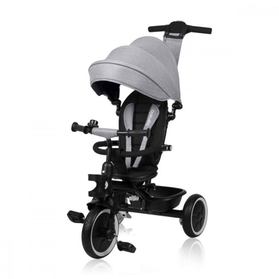 Lionelo Berry Grey Stone to produkt łączący funkcję rowerka spacerowego oraz jeździka trójkołowego. Przeznaczony jest dla dzieci będących w grupie wiekowej od 9 miesięcy do około 5 lat lub aż do osiągnięcia wagi 25 kg. Wygodne siedzisko obrotowe 360 stopni pozwala na swobodną zmianę ustawień, a regulowany uchwyt dla rodzica zmienia swoją wysokość w zależności od wzrostu opiekuna. O bezpieczeństwo dziacka dbają 3-punktowe pasy, osłona na przedniej feldze oraz barierka umieszczona wokół siedziska. Dzięki możliwości regulacji ustawień siedziska oraz specjalnemu podnóżkowi dla młodszych dzieci, produkt dostosowuje się i rośnie wraz z dzieckiem. Całość konstrukcji montowana na klik, co sprawia, że składanie trójkołowca jest nie tylko łatwe, ale również nie wymaga użycia dodatkowych narzędzi.